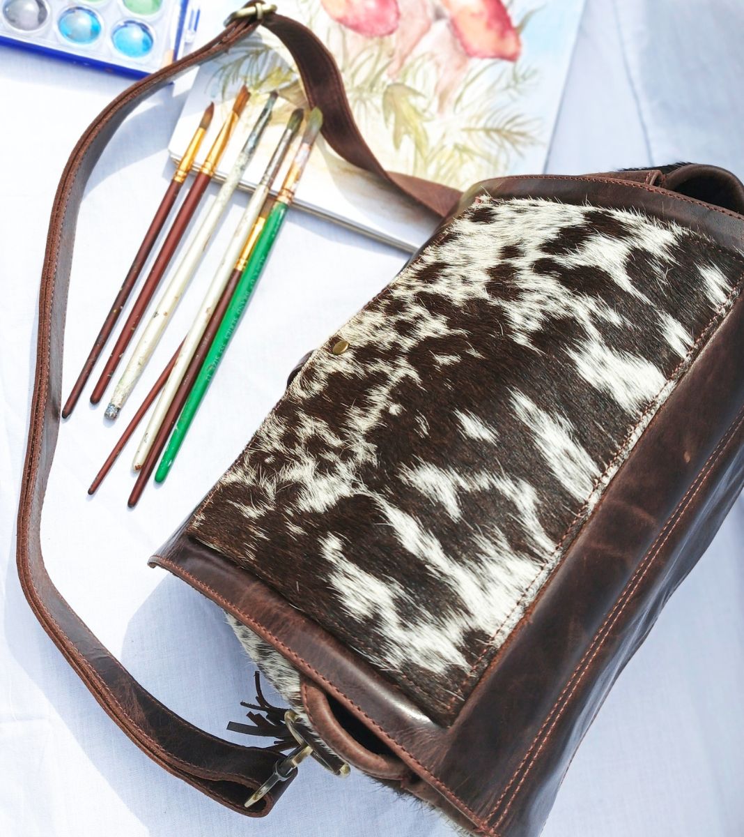 Experience premium craftsmanship with our one-of-a-kind cowhide leather bags, combining style, quality, and practicality.